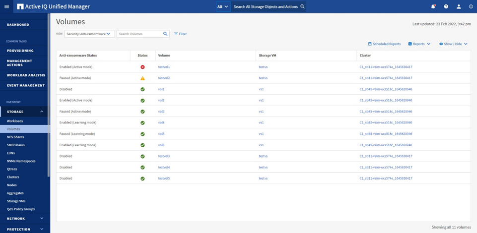 Active IQ Unified Manager 9.10 : Support for anti-ransomware